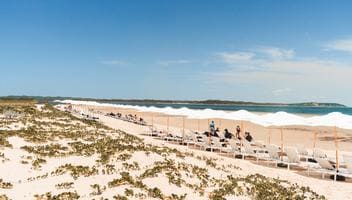 Experience ultimate relaxation on the beach at Portuguese Island. The "Beach Lounge" offers a perfect setting for couples or families. Enjoy full day access to a beach lounger and umbrella. Limited spaces available.